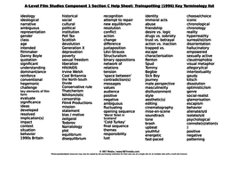 Trainspotting 1996 Key Terminology List Help Sheet A Level Film Studies Component 1 Section C